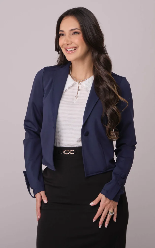 Uma peça amada por mulheres que valorizam alfaiataria com toque moderno.