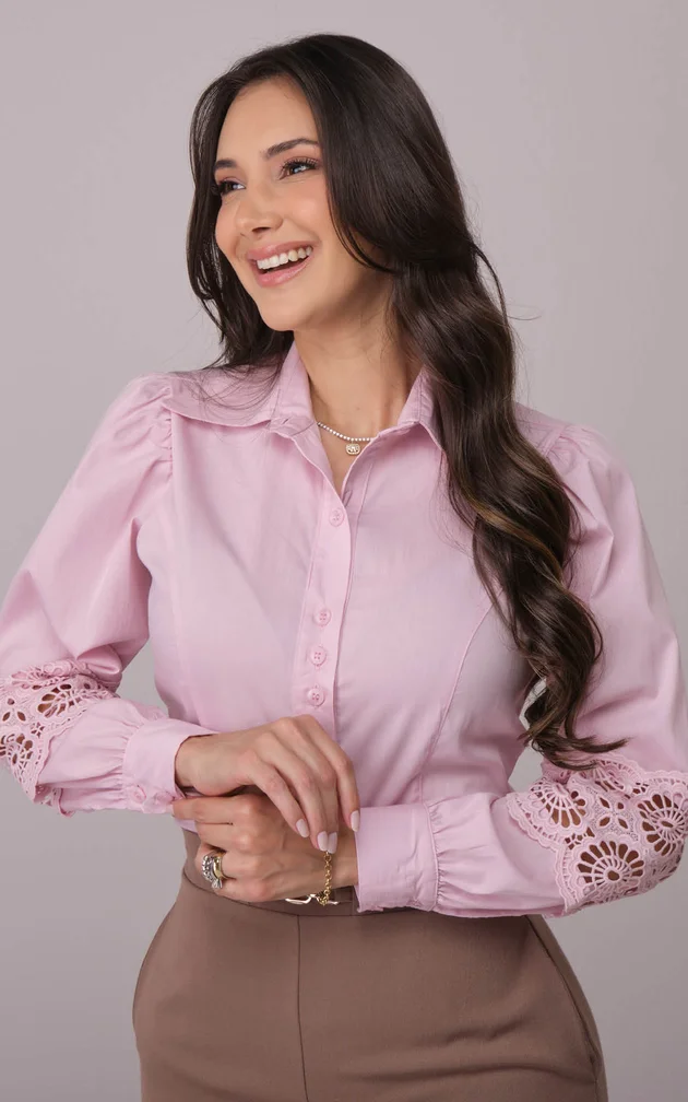 Camisa Mangas Longas e com Renda Sofia - Tata Martello