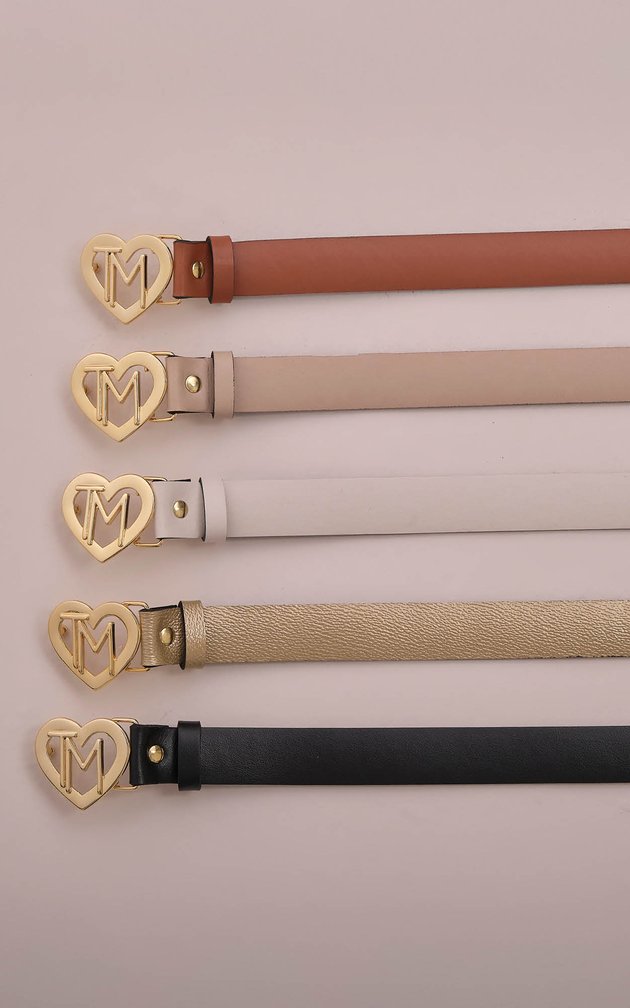 Delicado e moderno, o cinto em couro sintético com fivela exclusiva de coração vazado é o acessório perfeito para compor produções elegantes e femininas. Sua fivela em metal dourado traz um design único, que equilibra romantismo e sofisticação em cada detalhe.