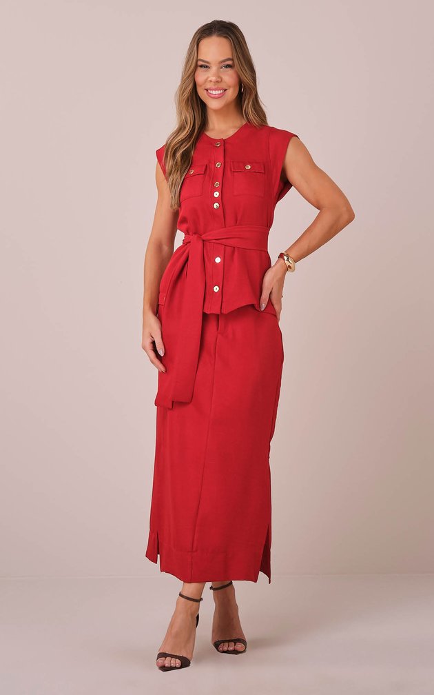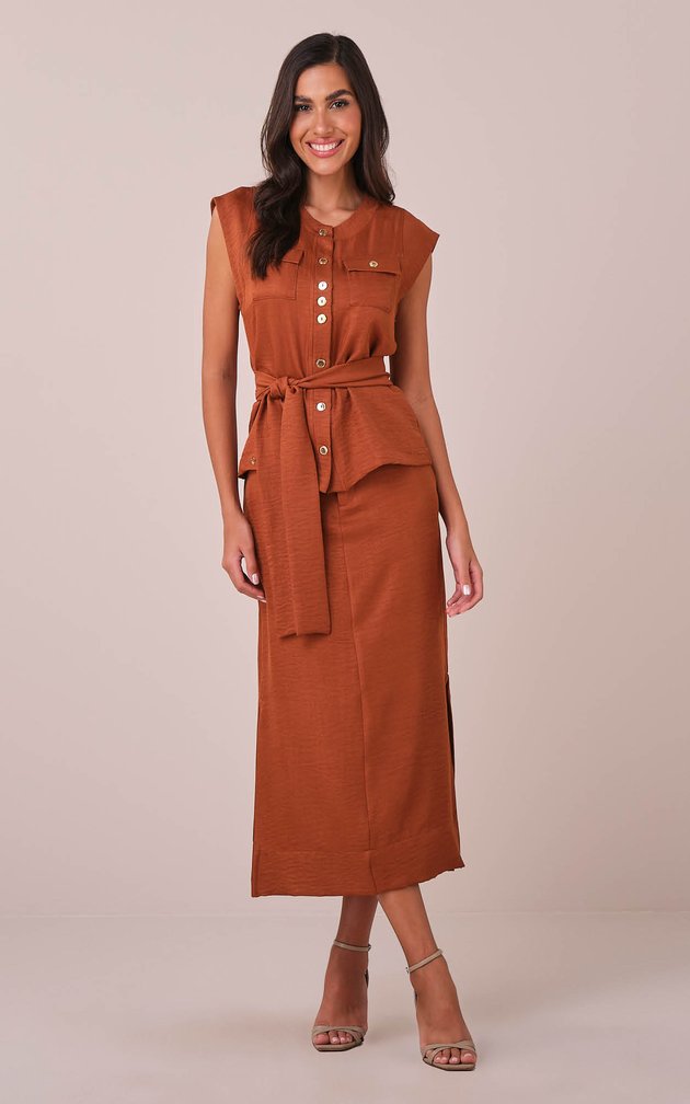 Detalhes saia: - Modelagem: Reta e alongada, no comprimento maxi midi totalmente versátil.