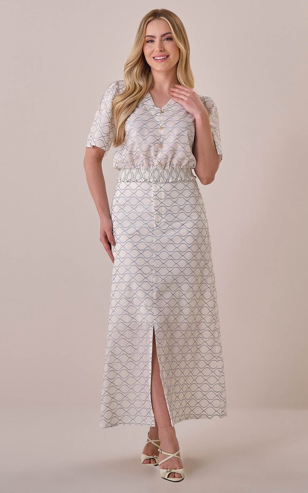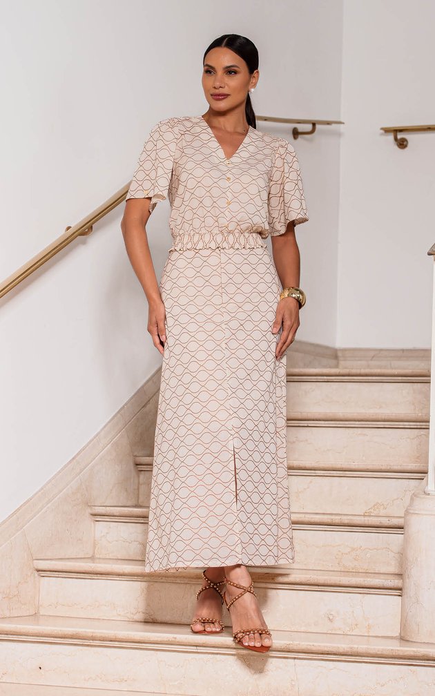 Este conjunto em algodão bordado traduz a essência da feminilidade elegante. Composto por blusa de acabamento refinado e saia maxi midi estruturada, é uma escolha premium que alia conforto, exclusividade e estilo atemporal.