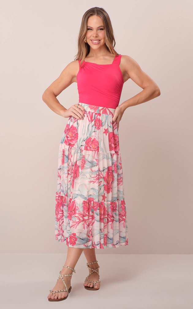 - Camadas: Saia em camadas, que dá movimento e fluidez a peça.