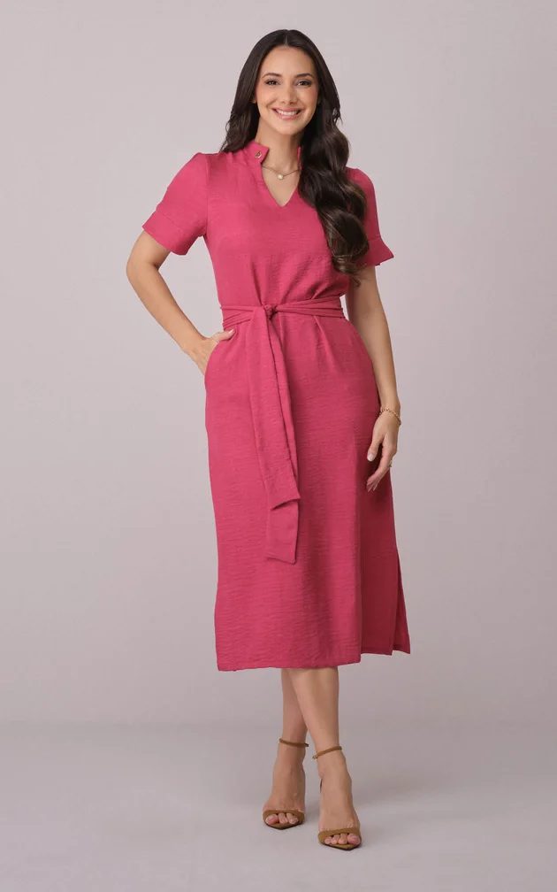 Vestido Midi com decote V e Faixa Aurora - Tata Martello