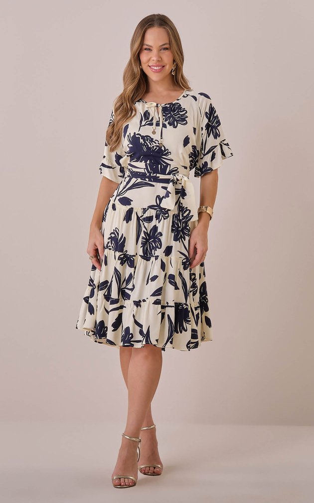 Este vestido combina a maciez da viscose com um design feminino e encantador. Com saia 3 marias, mangas fluidas e detalhes exclusivos, ele traduz sofisticação em cada movimento.