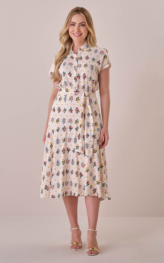 Com design refinado e toque romântico, este vestido midi em viscolinho floral traduz feminilidade e elegância em cada detalhe. Sua modelagem combina estrutura e fluidez, resultando em uma peça versátil para diferentes ocasiões.