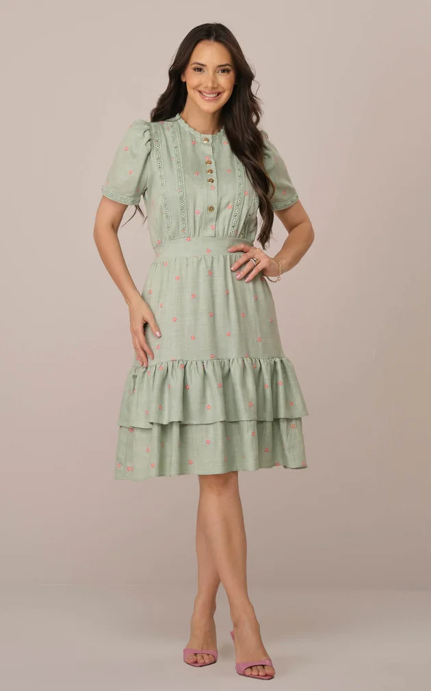 Ao vestir, transmite leveza, romantismo e uma elegância serena que chama atenção sem excessos.