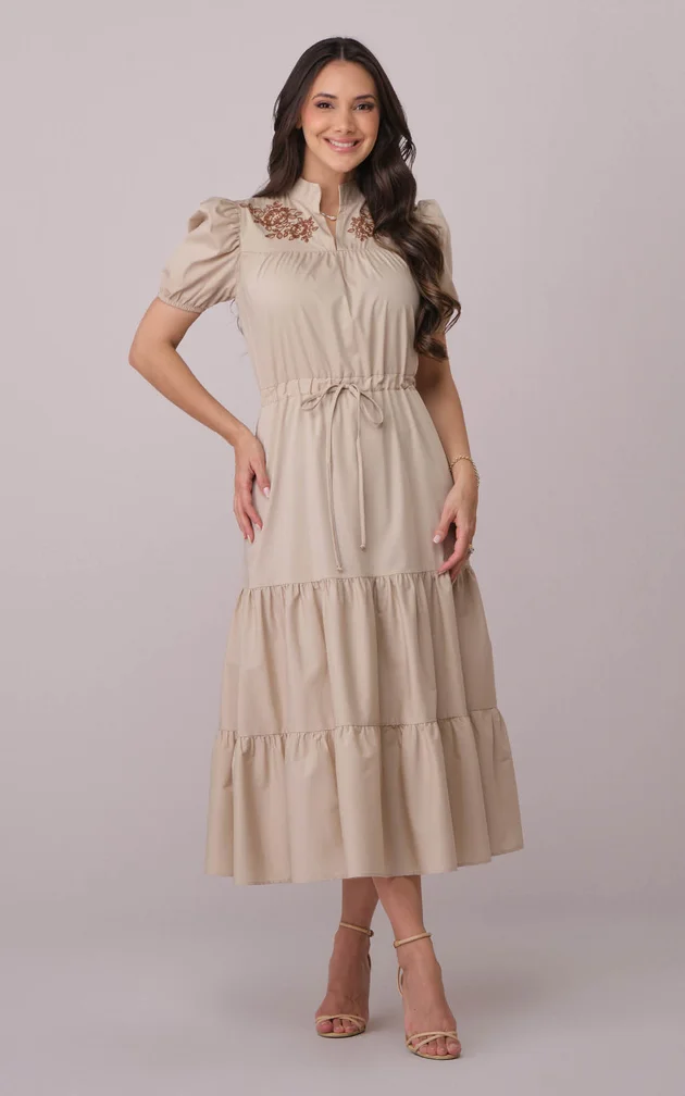 O bordado delicado na parte superior traz charme e sofisticação ao visual.
