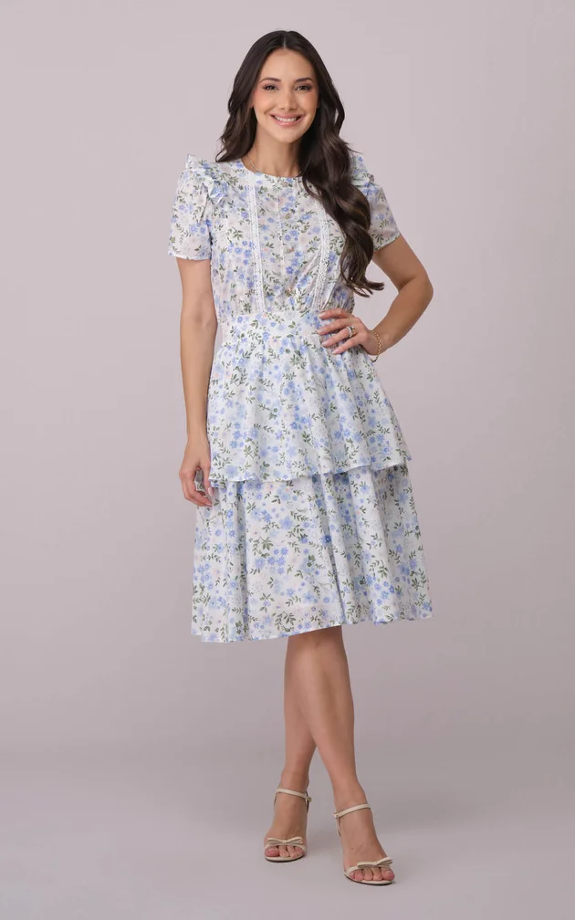Um vestido que expressa feminilidade clássica com delicadeza e charme atual.