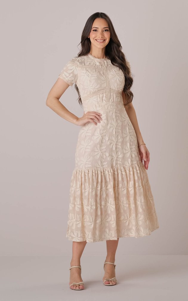 O Vestido Taciane traduz elegância clássica com delicadeza e riqueza de detalhes.