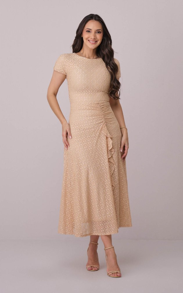 A modelagem midi acompanha o corpo com leveza e fluidez.