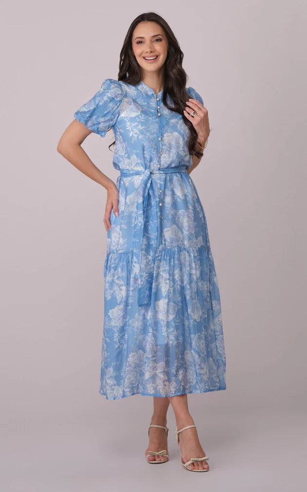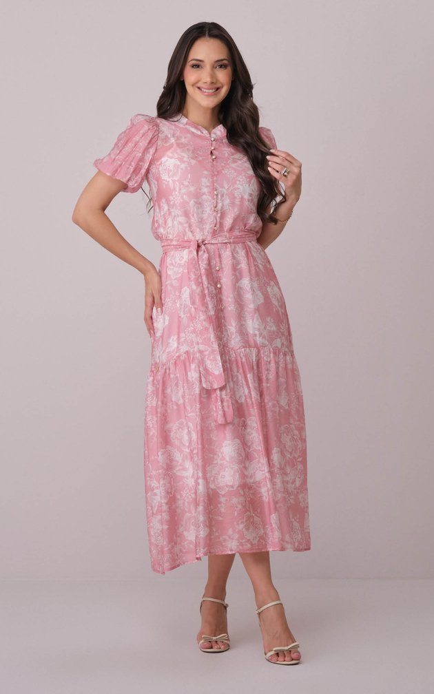 A estampa floral acrescenta charme romântico e beleza atemporal.